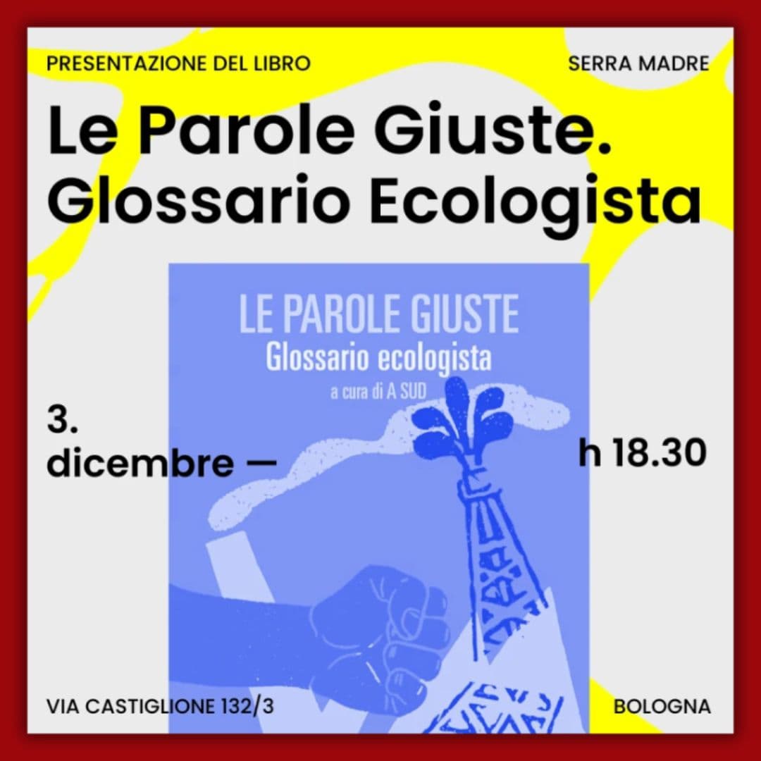 Il 3 dicembre a Le Serre dei Giardini Margherita di Bologna presentazione del libro Le Parole Giuste – GlossarioEcologista, una pubblicazione a cura di A Sud edita da Fandango.