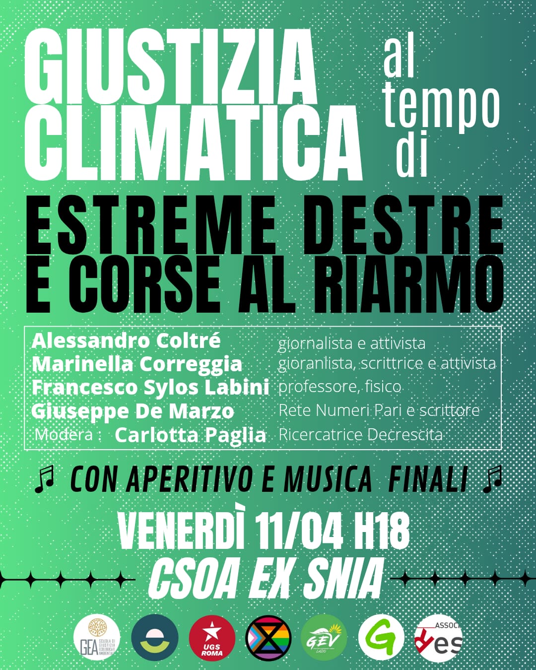Venerdì 11 aprile A Sud sarà a Roma al centro sociale Ex Snia per discutere di clima, corsa al riarmo e di estreme destre. Lo faremo con le realtà studentesche e universitarie, insieme ai movimenti climatici e alle forze ecologiste che stanno contrastando i venti guerra che soffiano sull’Europa.