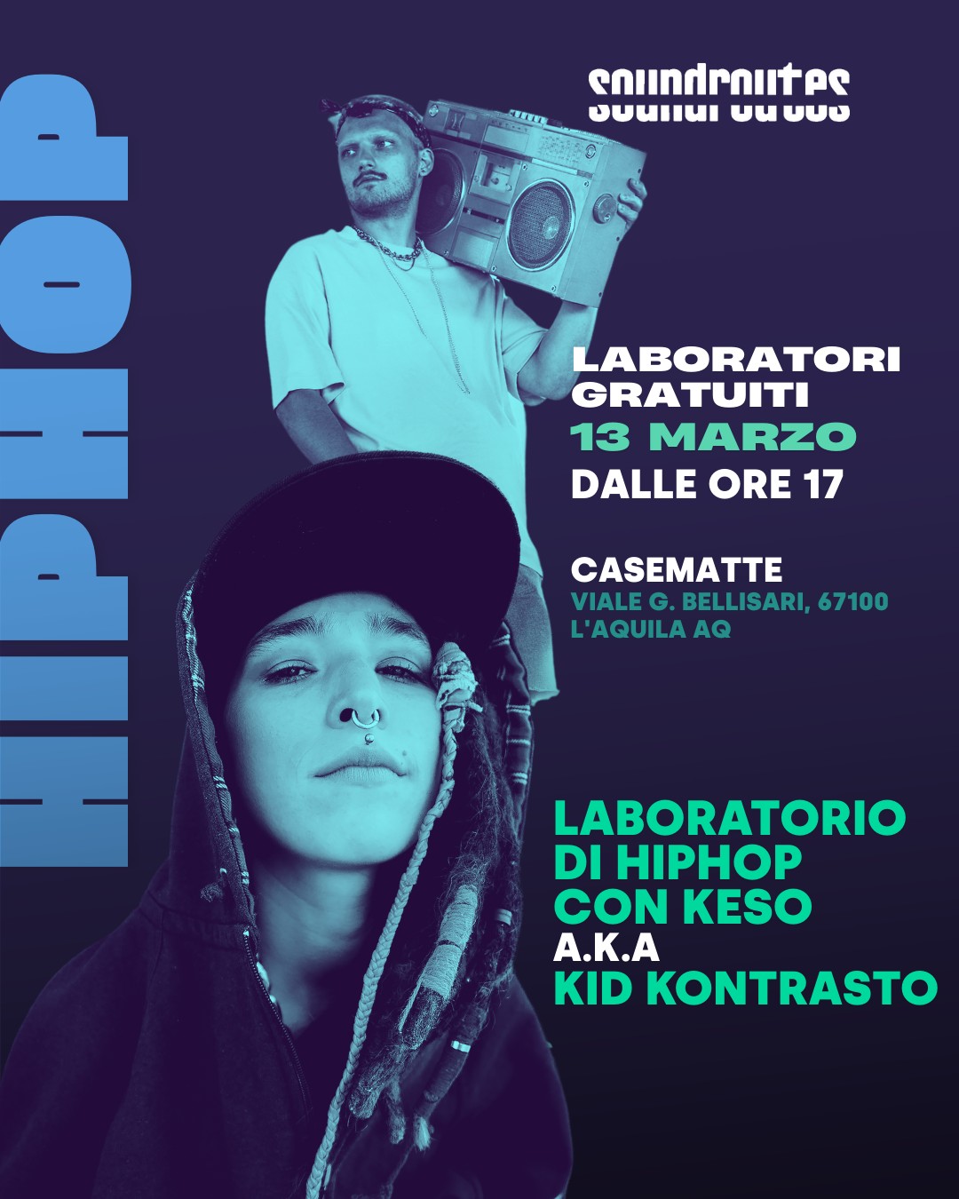 I laboratori di Soundroutes portano l’Hip Hop oltre i confini, unendo artistə emergenti e professionistə in un percorso di formazione, creazione musicale e giustizia sociale. Un incontro per affinare le tue skill artistiche, entrare in una rete internazionale e portare la tua voce su temi di impatto sociale e climatico.