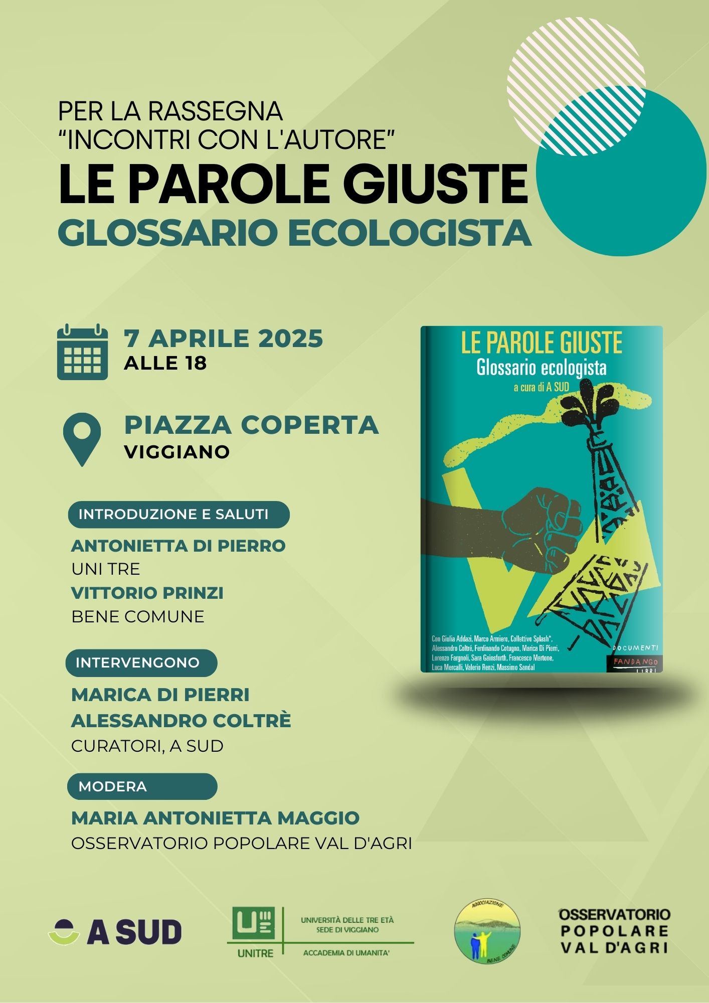 Il 7 aprile alla Piazza Coperta di Viggiano presentazione del libro Le Parole Giuste – Glossario Ecologista, una pubblicazione a cura di A Sud edita da Fandango nell’ambito della rassegna Incontri con l’autore.